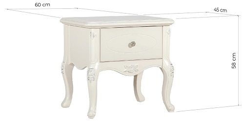 Bella 902 è un comodino classico color bianco avorio di dimensioni 60 x 45 x 58 cm.