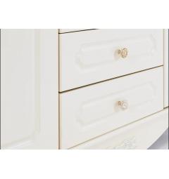 I decori floreali rifiniti da pennellate in tonalità argento, la linea ricurva dei piedini, i pomelli e le maniglie con motivi a fiori, l'intaglio a fresatura delle ante e dei cassetti, per finire con l'esclusiva copertura effetto velluto rosso dell'interno dei cassetti: ogni dettaglio pensato dagli artigiani per questo magnifico mobile basso da ingresso avorio contribuirà a creare nella vostra casa un'aria piena di raffinatezza e di lusso, sia accompagnandolo ad altri arredi di stile classico della collezione BELLA, sia mettendolo accanto a mobili di linea più moderna e minimalista.