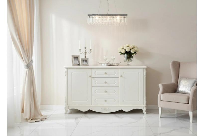 La credenza classica avorio BELLA 992 ha dimensioni 140 x 47 x 80 cm e trova spazio per le sue caratteristiche in diversi interni della casa: perfetta come cassettiera classica per ingresso si presta a diventare uno splendido buffet classico elegante per la vostra sala da pranzo. Un elemento di arredo che potrete utilizzare per mettere in risalto gli oggetti a cui più tenete come candelieri, cornici e vassoi in argento.