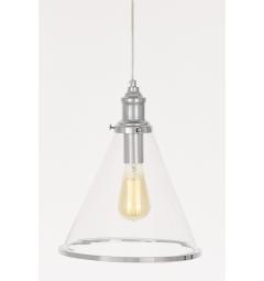 La lampada FEROLI cattura l'attenzione con la sua struttura cromata moderna, semplice e lineare ma allo stesso tempo raffinata. Il paralume a pagoda in vetro trasparente, arricchito dal bordo color cromo, conferisce un tocco di stile industriale vintage che si distingue per la sua originalità.