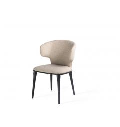 La seduta, accuratamente profilata, assicura un comfort elevato anche durante un utilizzo prolungato, accompagnando in modo naturale la postura. Le gambe sottili in metallo, rifinite con verniciatura opaca, garantiscono solidità, stabilità e una piacevole eleganza formale, mantenendo al tempo stesso una linea essenziale e contemporanea.