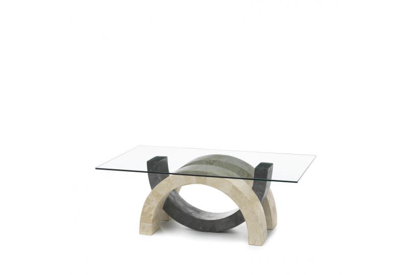 Con Viva il tuo living si arricchisce all’istante di una luce sofisticata: il piano in vetro trasparente riflette e amplifica la luce naturale, facendo sembrare l’ambiente più ampio e arioso. Ma è la base a firma davvero la differenza: gambe in pietra fossile white agata e Gray Stone, sorrette da una robusta struttura in compensato marino, garantiscono stabilità e unicità. Ogni elemento, dal tono beige al grigio morbido, racconta una storia di materiali naturali e lavorazione artigianale.