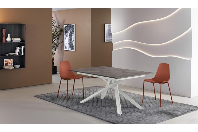 Immagina di poter trasformare il tuo soggiorno o la sala da pranzo in uno spazio accogliente e versatile ogni volta che vuoi. Il tavolo allungabile Tempo 25, con il suo elegante piano in melaminico effetto marmo antracite opaco e le gambe in metallo bianco verniciato, è la scelta perfetta per chi ama ricevere ospiti senza rinunciare allo stile.