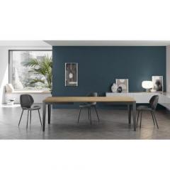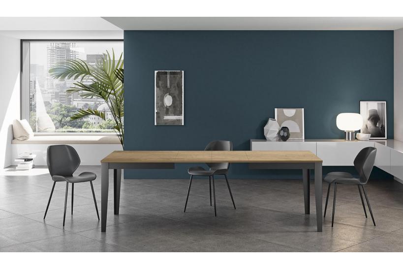 La superficie effetto rovere regala un tocco di eleganza naturale, rendendo il tavolo il protagonista assoluto di qualsiasi ambiente, dal soggiorno alla cucina open space. Le gambe in metallo nero aggiungono una nota di contemporaneità che valorizza sia spazi moderni che più classici. Il piano e le allunghe in melaminico sono pensati per resistere a urti, graffi e macchie, assicurandoti una manutenzione semplice e una durata impeccabile nel tempo.