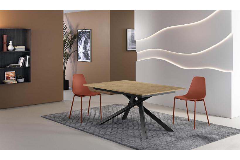 Non si tratta solo di un tavolo allungabile: Tempo 25diventa protagonista della tua zona living grazie all'attenzione per i dettagli e ai materiali di prima scelta. Il piano di lavoro è realizzato in melaminico effetto rovere, caldo e naturale al tatto, perfetto per creare un’atmosfera accogliente. La struttura in metallo verniciato nero assicura stabilità e durata inalterata nel tempo, ideale per un utilizzo quotidiano senza pensieri.