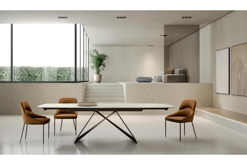 Non lasciare che i soliti limiti di spazio compromettano lo stile e la convivialità che desideri: scegli il tavolo allungabile Impulso X in ceramica effetto marmo Calacatta oro e struttura bronzo, e regala un nuovo potere alla tua casa.