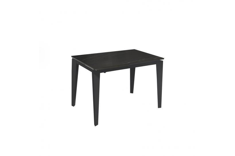 Il vero segreto di questo tavolo rettangolare sta nella sua superficie in ceramica portoro opaca, elegante e resistente, applicata su un solido vetro temperato: una combinazione che regala uno straordinario effetto materico e una protezione assoluta contro graffi, macchie e calore. Le gambe in metallo color antracite donano stabilità e carattere, sposando perfettamente sia ambienti moderni che più classici.