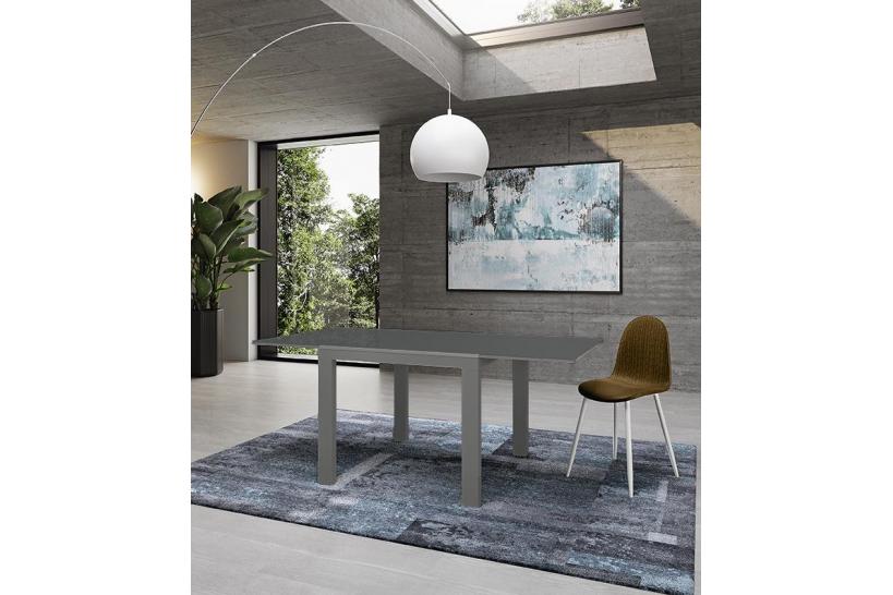 Tavolo allungabile quadrato 6 posti top vetro grigio Icona