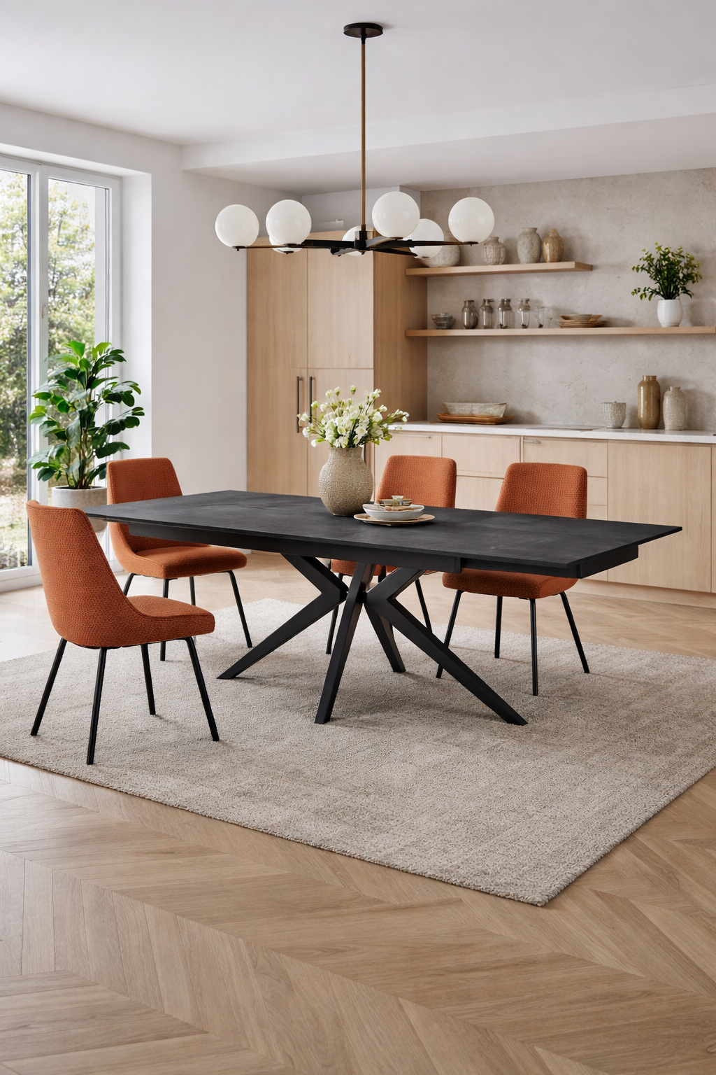 Il vero vantaggio del tavolo moderno Accordo 2 è la sua versatilità: con il suo piano da 160 cm che si estende facilmente fino a 240 cm, offre tutto lo spazio che ti serve, quando ti serve. Il top in raffinata ceramica finitura marmo nero opaco è più di una scelta estetica: offre resistenza a graffi e calore, facendo sì che la bellezza si accompagni sempre alla robustezza. Le gambe in metallo nero opaco, dal design sobrio e contemporaneo, assicurano stabilità e donano un tocco industrial chic che si adatta a qualsiasi ambiente, dalla cucina moderna al soggiorno minimalista.