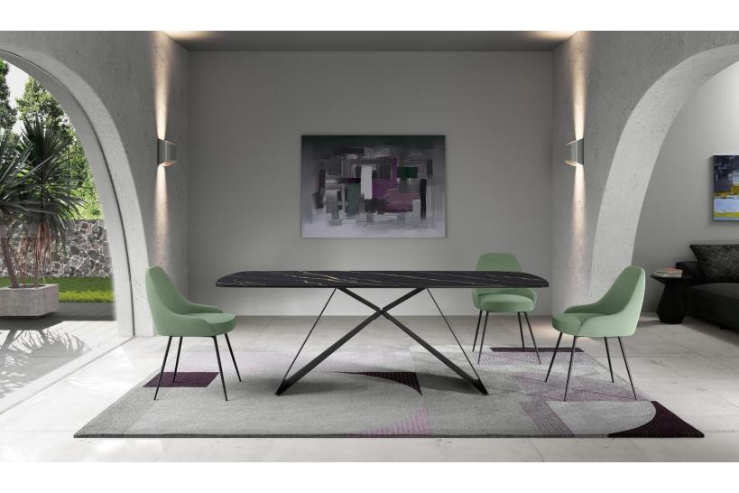 Le gambe in metallo nero non sono solo sinonimo di solidità: danno un tocco minimal, quasi scultoreo, che si abbina alla perfezione sia ad arredi moderni sia ad ambienti più ricercati. L’equilibrio fra materiali di qualità e cura dei dettagli trasforma questo tavolo fisso nell’elemento distintivo della sala da pranzo o della zona living.