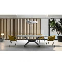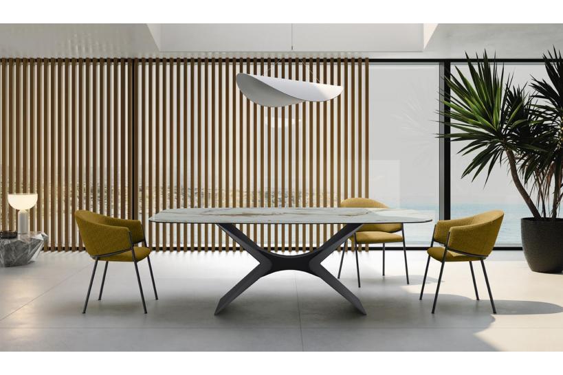 Risolvere la voglia di uno stile unico e contemporaneo senza sacrificare la praticità è possibile: Essenza nasce proprio per questo. La ceramica effetto marmo impreziosisce la stanza senza le fragilità della pietra naturale, mentre il metallo verniciato con trattamento soft-touch aggiunge un tocco glamour e garantisce una straordinaria longevità. Dimentica le superfici complicate da pulire o da proteggere: qui puoi vivere la convivialità giorno dopo giorno, con un tavolo sempre splendente.