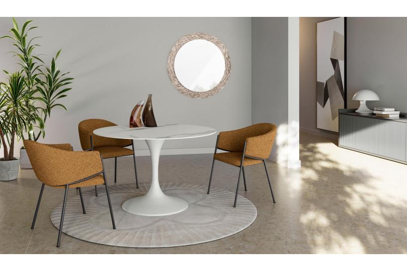Dì addio alle superfici delicate che macchiano facilmente: la ceramica bianca effetto marmo di questo tavolo ti permette di rilassarti durante pranzi in famiglia, cene tra amici, o anche una veloce colazione prima di uscire. La sua resistenza, unita alla struttura solida in metallo, lo rende un investimento duraturo: niente usura, solo piacere di vivere la casa.