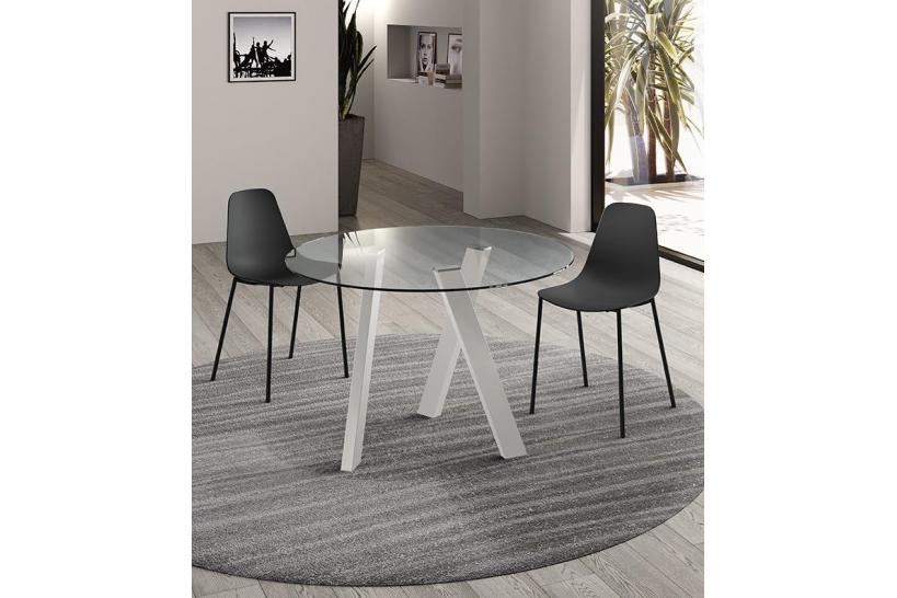 Il Tavolo rotondo moderno Canto è caratterizzato da un top in vetro temperato trasparente con spessore di 1 cm, una soluzione che garantisce solidità, sicurezza ed eleganza estetica. Il vetro, oltre a essere resistente, contribuisce a diffondere la luce naturale, alleggerendo visivamente l’ingombro del tavolo e rendendolo ideale anche per ambienti di dimensioni contenute. Le gambe in metallo verniciato bianco sono fissate al piano tramite pietre incollate con tecnica UV, un dettaglio tecnico che assicura stabilità e durata nel tempo, mantenendo una linea pulita ed essenziale. La struttura incrociata conferisce al tavolo un aspetto scultoreo, trasformandolo in un autentico tavolo rotondo in vetro dal forte impatto visivo.