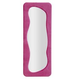 La concezione di Lo specchio Theodor mette in risalto la fusione tra l'estetica e la praticità. Il suo design sofisticato e le dimensioni considerevoli non solo abbelliscono la parete su cui viene appeso ma ampliano visivamente lo spazio, rendendo la stanza più luminosa e ariosa. La scelta del velluto fucsia per la cornice si allontana dagli standard, proponendo un'opzione audace per chi è alla ricerca di un elemento d'arredo che sia al tempo stesso un'affermazione di stile.