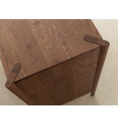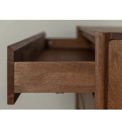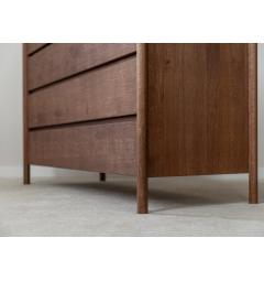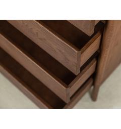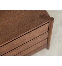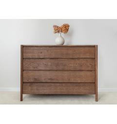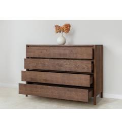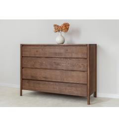 La struttura compatta e solida è caratterizzata da linee pulite e superfici continue. I quattro cassetti si aprono con guide silenziose e scorrono senza sforzo, mantenendo l’ordine in modo semplice e veloce. L’assenza di maniglie a vista rende il frontale uniforme e moderno, mentre i dettagli artigianali come le giunzioni sagomate agli angoli superiori aggiungono personalità e stile senza appesantire l’insieme.