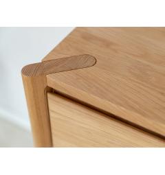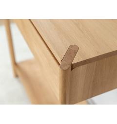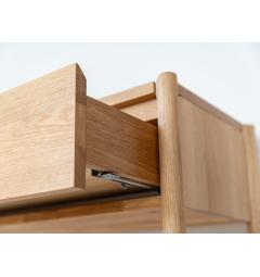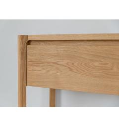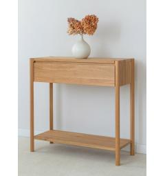 Realizzata in rovere naturale con finitura oliata, la consolle mette in risalto la venatura autentica del legno. Le tonalità calde e luminose del materiale attraversano con continuità il piano, la struttura e il frontale del cassetto, creando un effetto armonioso e naturale che dona agli ambienti un’atmosfera accogliente.