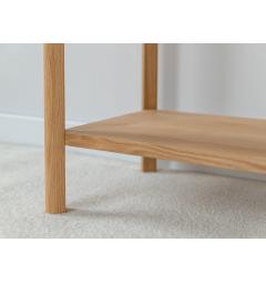 La consolle moderna con cassetto in rovere massello è progettata per offrire non solo eleganza ma anche praticità. Nella parte inferiore è presente un ripiano aggiuntivo che permette di organizzare oggetti più voluminosi come borse, scatole decorative o libri.