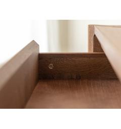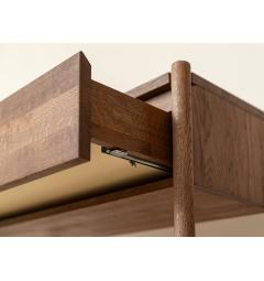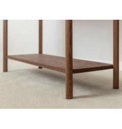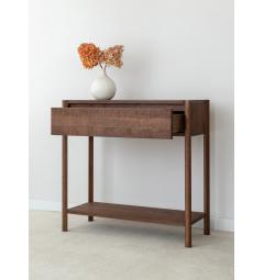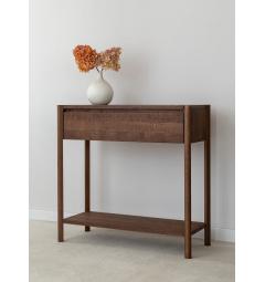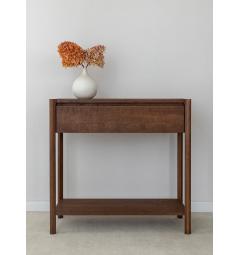 La consolle con cassetto in rovere massello tabacco è progettata per offrire non solo eleganza ma anche funzionalità. Nella parte inferiore è presente un ripiano aggiuntivo che permette di appoggiare borse, scatole decorative o libri.