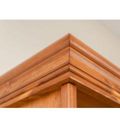 La libreria in legno massello di pino color miele stile shabby toscano è dotata di lavorazioni che aumentano il suo fascino visivo. La cornice superiore è fresata in un modo che richiama lo stile dei mobili delle campagne toscane, mentre il bordo inferiore è lavorato per aggiungere leggerezza alla struttura robusta e solida. L'aspetto naturale e accogliente della libreria si adatta perfettamente a un ambiente domestico, sia in soggiorno che in ingresso e può essere utilizzata per tenere in ordine libri ma anche per esporre argenteria, foto e tutti gli oggetti a cui tenete di più.