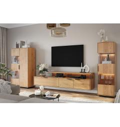 Il porta tv sospeso rovere massello design moderno combina l'eleganza naturale del rovere con elementi moderni dal design contemporaneo ed espressivo. Il colore dorato del legno con nodi e venature visibili conferisce agli interni un carattere caldo, mentre la forma visivamente leggera aumenta l'estetica di ogni stanza, senza però sopraffarla. Ideale per i soggiorni contemporanei.