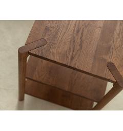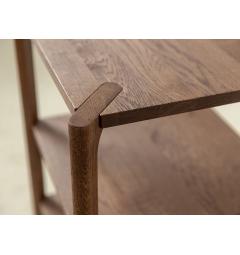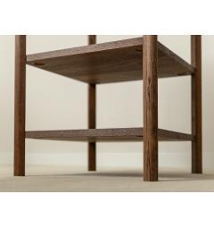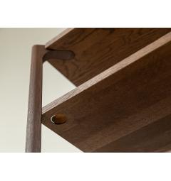 Realizzato in legno massello di rovere con una calda finitura tabacco, lo scaffale mette in evidenza la ricca venatura naturale del legno. Le tonalità scure e profonde esaltano la materia e donano al mobile un carattere contemporaneo ed elegante, perfetto per ambienti moderni, minimalisti o dal gusto nordico.