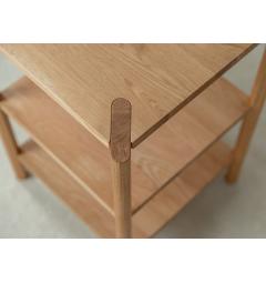 Realizzato in legno massello di rovere naturale, questo scaffale mette in risalto tutta la bellezza autentica del legno: venature calde, superfici levigate e una finitura a olio che valorizza la materia senza coprirne la naturalezza. Il risultato è un mobile dal look luminoso e accogliente, facile da abbinare a interni moderni, nordici o minimalisti.