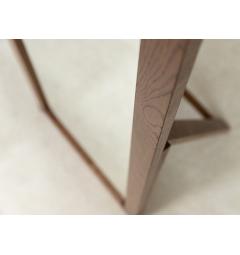 La struttura in rovere naturale massello, valorizzata da una raffinata finitura ad oliatura, esalta le venature marcate e irregolari del legno. Ogni esemplare racconta una storia diversa attraverso sfumature calde e profonde che rendono il pezzo unico e autentico.