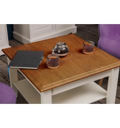 Essenziale, elegante, discreto e resistente: il tavolino quadrato shabby chic bianco e rovere in legno massello di pino è un compagno perfetto per i vostri momenti di relax che non vi deluderà mai. Grazie alle dimensioni contenute è perfetto anche in ambienti piccoli senza compromettere comodità e funzionalità perché progettato con uno spazioso ripiano inferiore salva spazio. Le misure del tavolino da caffè shabby chic quadrato sono 70 x 70 x 48 cm.