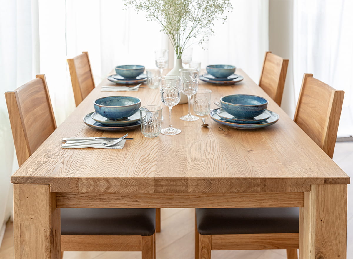 Il tavolo rettangolare in rovere naturale chiaro ha un design essenziale che si abbina alla perfezione con altri mobili in legno naturale e con altri stili di arredo, dal minimalista allo scandi e al moderno. La scelta estetica di mostrare il legno nella sua naturalezza però lascia aperta la possibilità di inserirlo anche in interni dal gusto più rustico. GAIA rappresenta così una scelta vincente perché è un mobile resistente e versatile che resterà con voi per lunghissimo tempo.