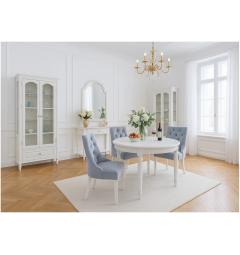 Questo tavolo rotondo in legno bianco è pensato per chi ama creare atmosfere accoglienti, raffinate e naturali. Accostato a sedute imbottite nei toni del blu polvere, del lino o della sabbia, dona equilibrio e luminosità alla stanza. Perfetto in abbinamento con vetrine, madie e consolle in stile provenzale, il tavolo PRINCESS diventa il cuore pulsante della zona pranzo, unendo tradizione e comfort con grazia impeccabile.