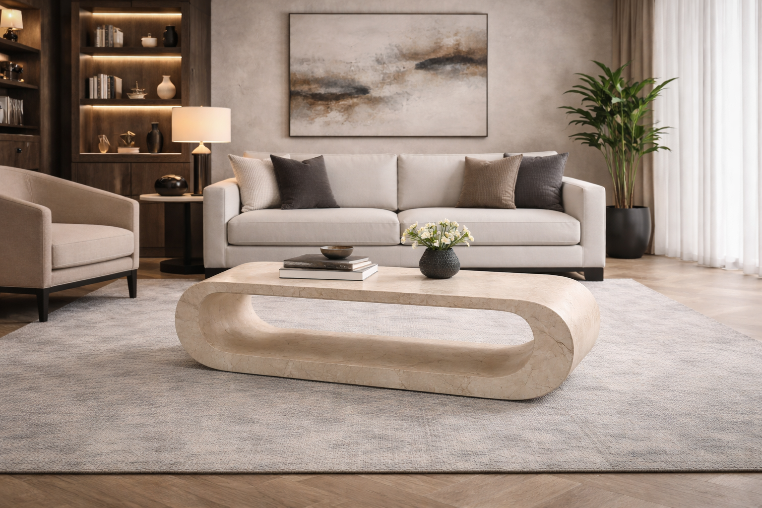 Scegliere il porta TV Enea 130x35x35h significa portare in casa un pezzo unico: la sua base realizzata in pietra fossile white agata combina la solidità e la bellezza delle pietre naturali alla luminosità di una finitura beige chiara e delicata, capace di illuminare l’ambiente e renderlo accogliente. La struttura interna in resistente compensato marino lo rende affidabile e stabile, perfetto per sostenere schermi di grandi dimensioni e per organizzare i tuoi accessori multimediali con ordine ed eleganza.