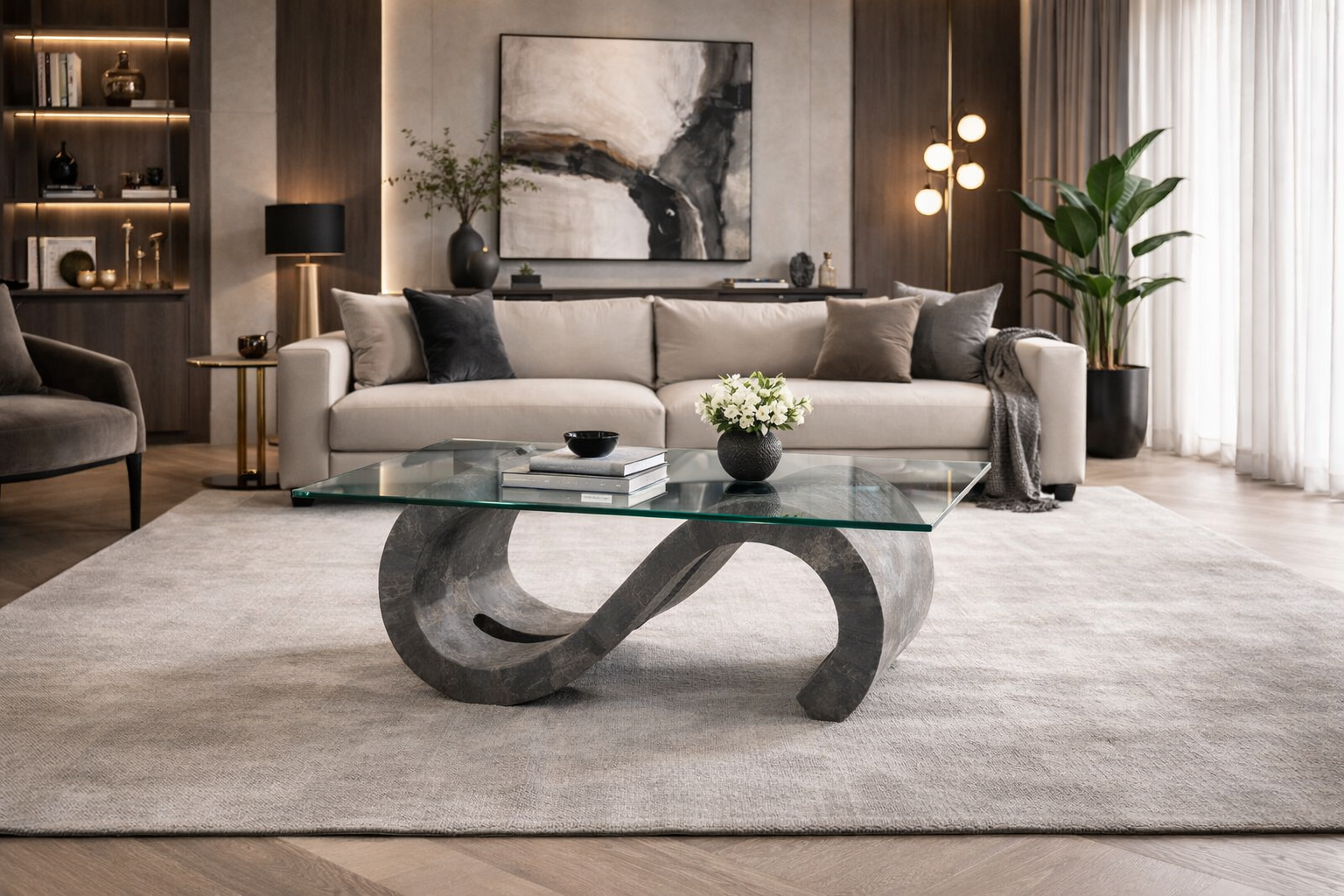 Questo raffinato complemento d’arredo non è solo bello da vedere: il suo top in vetro temperato offre sicurezza quotidiana e resistenza a urti o graffi, risultando pratico per appoggiare riviste, vassoi e oggetti di design. Le gambe, realizzate in preziosa pietra fossile Gray Stone e sostenute da una robusta struttura interna in compensato marino, aggiungono un tocco di esclusività e solidità, mentre il tono neutro si integra con ogni palette di colori. Così hai un elemento che unisce estetica moderna e affidabilità nella vita di tutti i giorni.