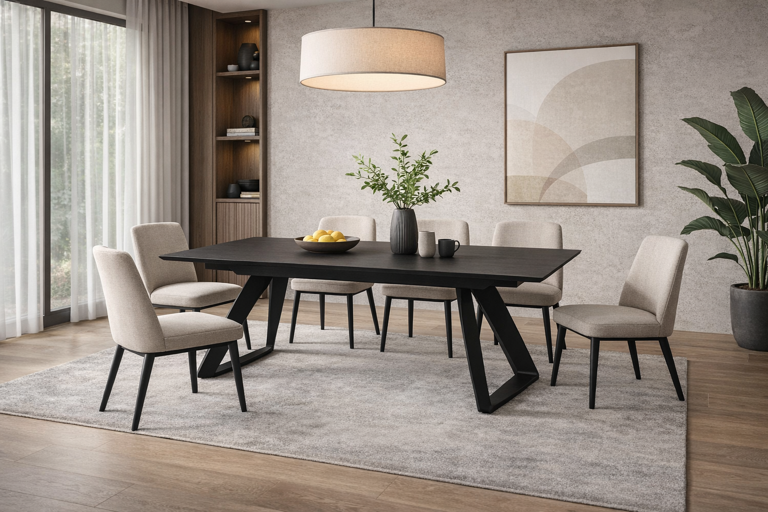 L’equilibrio tra praticità e estetica emerge subito: il piano e le prolunghe, realizzati in HPL su robusto MDF, sfoggiano una prestigiosa finitura grigio scuro che dona profondità e carattere all’ambiente. Le solide gambe in metallo nero non solo esaltano lo stile industrial chic, ma assicurano massima stabilità, anche nelle occasioni con tanti invitati. Dettaglio che amerai: i materiali resistenti sono facili da pulire e mantengono il loro fascino nel tempo, anche nell’uso quotidiano.