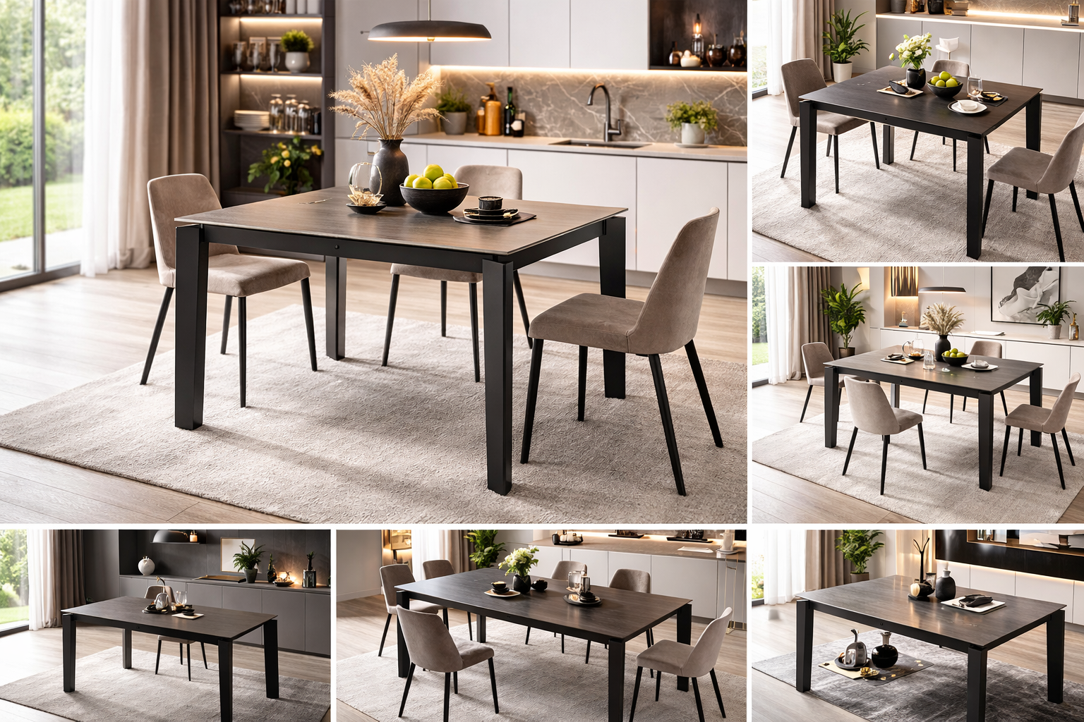 Immagina la scena: una cena improvvisata tra amici, oppure la colazione con tutta la famiglia la domenica mattina. Con il tavolo allungabile in ceramica Linea 80x120-170 cm con gambe in metallo, ogni occasione trova la sua dimensione ideale senza rinunciare a stile e funzionalità. Questo tavolo si distingue per la sua raffinata finitura in ceramica effetto marmo grigio opaco, che dona carattere all’ambiente e valorizza qualsiasi stile d’arredo, dal moderno al più classico.
