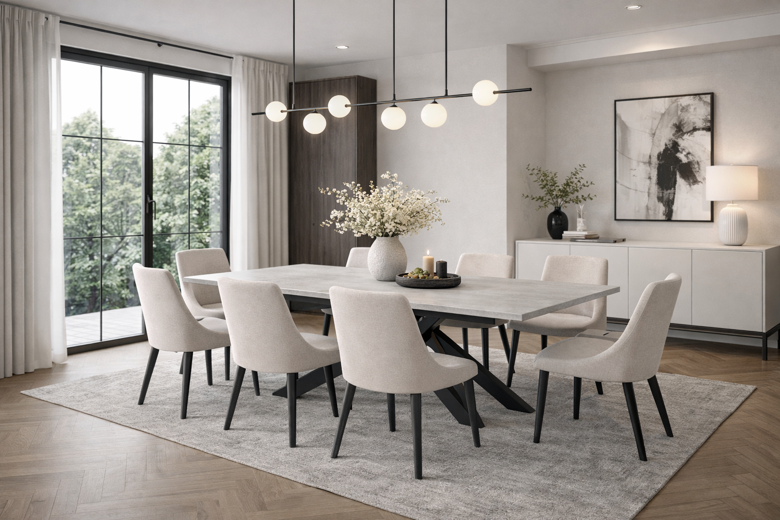 Il Tempo 25 porta nella tua sala da pranzo tutto ciò che cerchi in un tavolo: si estende rapidamente da 140 a 190 cm grazie a pratiche allunghe interne, diventando il protagonista quando hai bisogno di spazio. Il suo piano in resistente melaminico color cemento bianco opaco richiama le tendenze più attuali dell’arredamento, rendendo l’ambiente luminoso e accogliente. Le gambe in metallo verniciato nero conferiscono stabilità, robustezza e quel tocco industriale che non passa mai di moda.