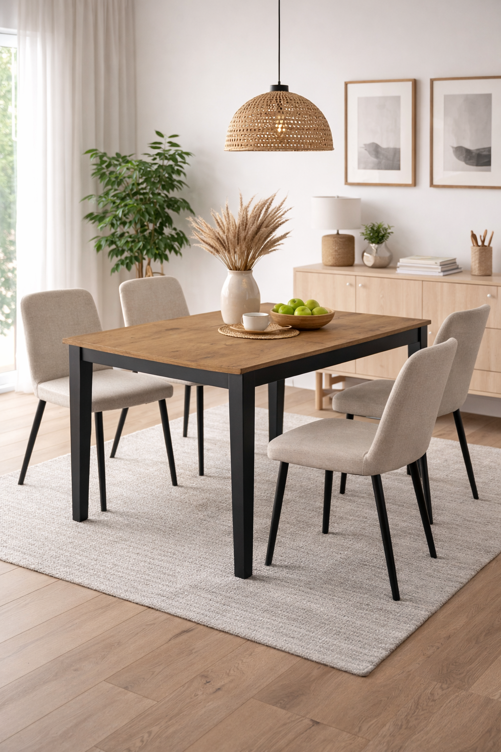 La superficie effetto rovere regala un tocco di eleganza naturale, rendendo il tavolo moderno il protagonista assoluto di qualsiasi ambiente, dal soggiorno alla cucina open space. Le gambe in metallo nero aggiungono una nota di contemporaneità che valorizza sia spazi moderni che più classici. Il piano e le allunghe in melaminico sono pensati per resistere a urti, graffi e macchie, assicurandoti una manutenzione semplice e una durata impeccabile nel tempo.