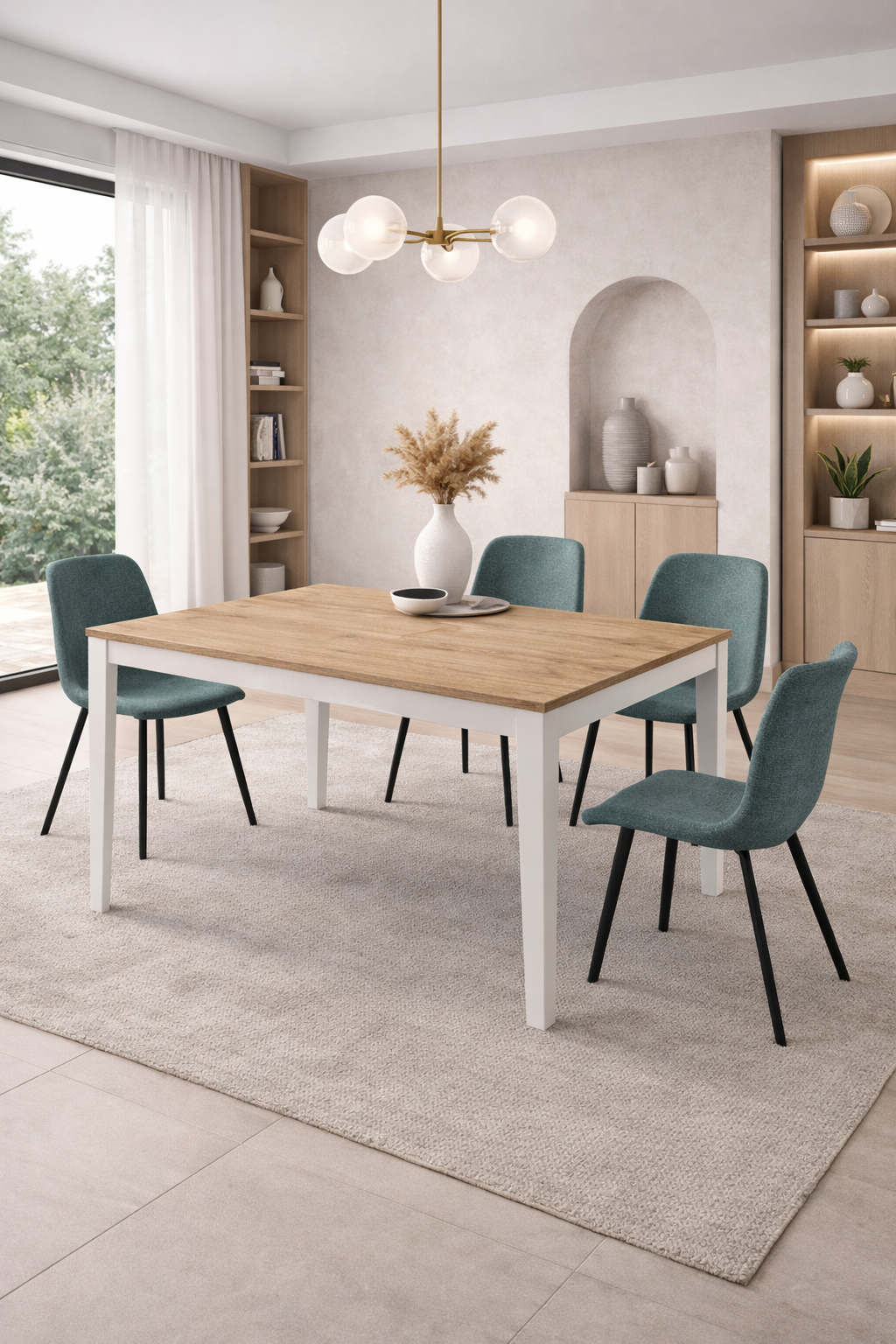 Scegliere questo tavolo moderno significa regalarti uno spazio su misura per ogni occasione, senza rinunciare a una personalità unica e contemporanea. Le sue linee pulite e il mix tra finitura in rovere e metallo bianco lo rendono protagonista sia in cucine moderne che in soggiorni di tendenza.