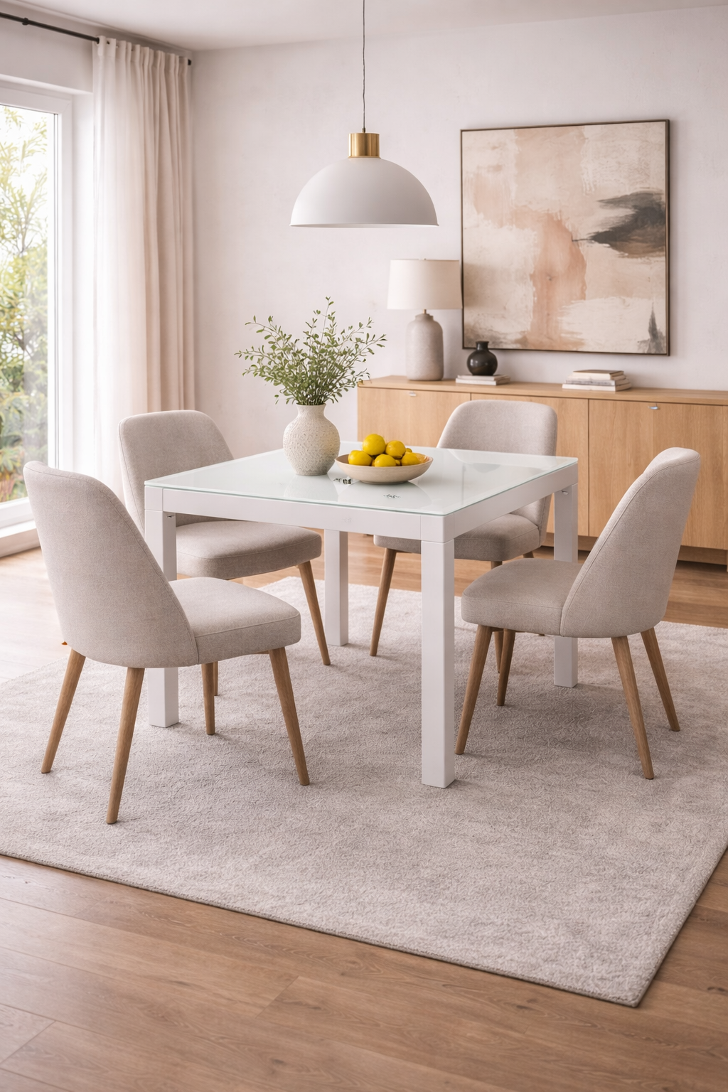 Quando la quotidianità richiede praticità, ma non vuoi mai rinunciare al design, un tavolo estensibile dal carattere contemporaneo fa la differenza. Grazie al raffinato piano in vetro temperato bianco extrawhite, spesso e resistente, ogni ambiente acquista luce e personalità. Con un semplice movimento, la superficie passa da 90 x 90 cm a un generoso 163,5 x 90 cm, accogliendo comodamente ospiti extra senza fatica.