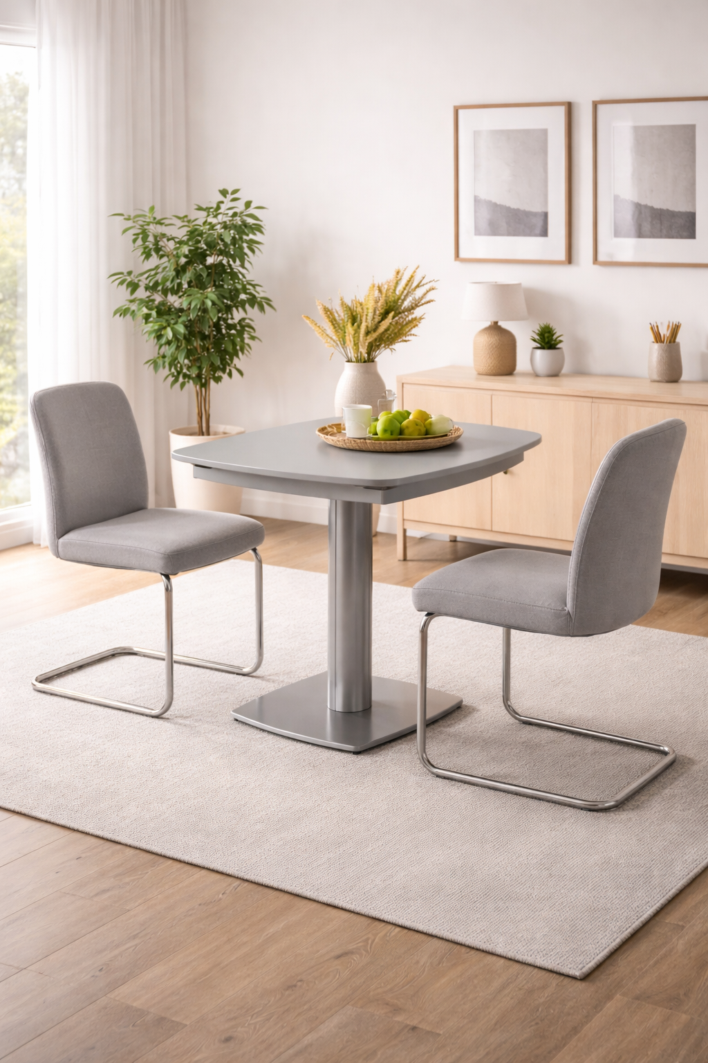 Con la sua superficie in vetro temperato dal color grigio sofisticato e le gambe in metallo robuste in coordinato, il tavolo moderno Zenit eleva qualsiasi ambiente, dalla cucina open space al soggiorno più moderno. Misura comodamente 120x90 cm, ma si allunga fino a 180 cm in pochi istanti, offrendo uno spazio generoso senza sacrificare la pulizia delle linee e l’eleganza del design. Ideale per chi non vuole rinunciare allo stile anche quando ha bisogno di accogliere più ospiti.