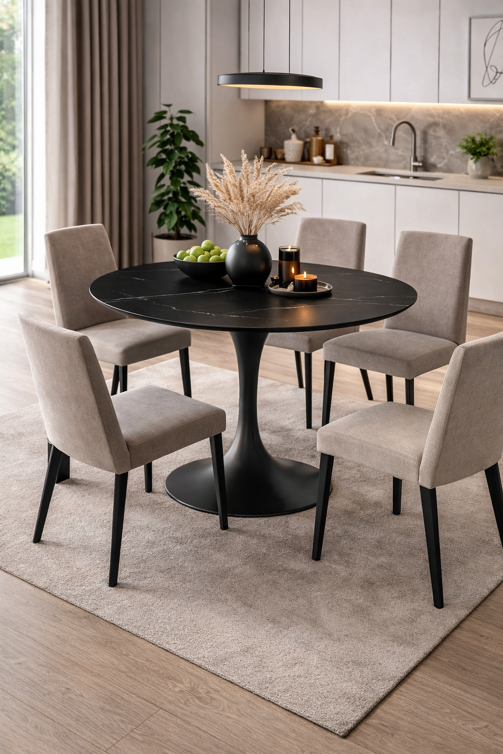 Dimentica i tavoli ordinari: questa soluzione trasmette un’eleganza sofisticata, grazie al piano in ceramica effetto marmo nero che riflette la luce con una lucentezza moderna. Il tocco contemporaneo si completa con la solida base in metallo verniciato nero, dal profilo minimal ma resistente, perfetta se ami design e praticità nello stesso complemento d'arredo.